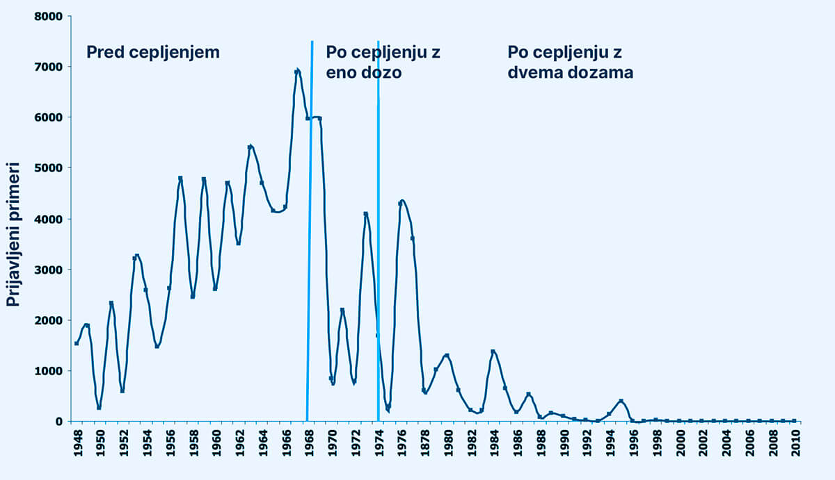 Slika 1: Prijavljeni primeri ošpic v Sloveniji 1948-2010